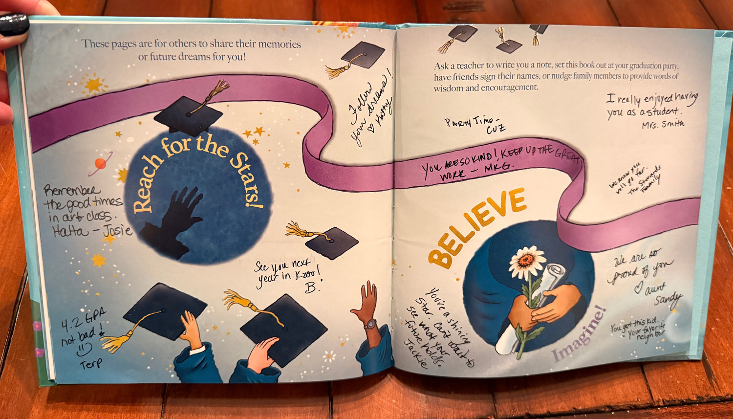 “With a senior in high school I wanted to provide my child with a unique gift that they will enjoy before, during and after graduation. This fun and interactive book allows for teachers, family and friends to write words of inspiration while also sharing a sweet story of growth and development. I can’t wait to give this to my child when they graduate!”