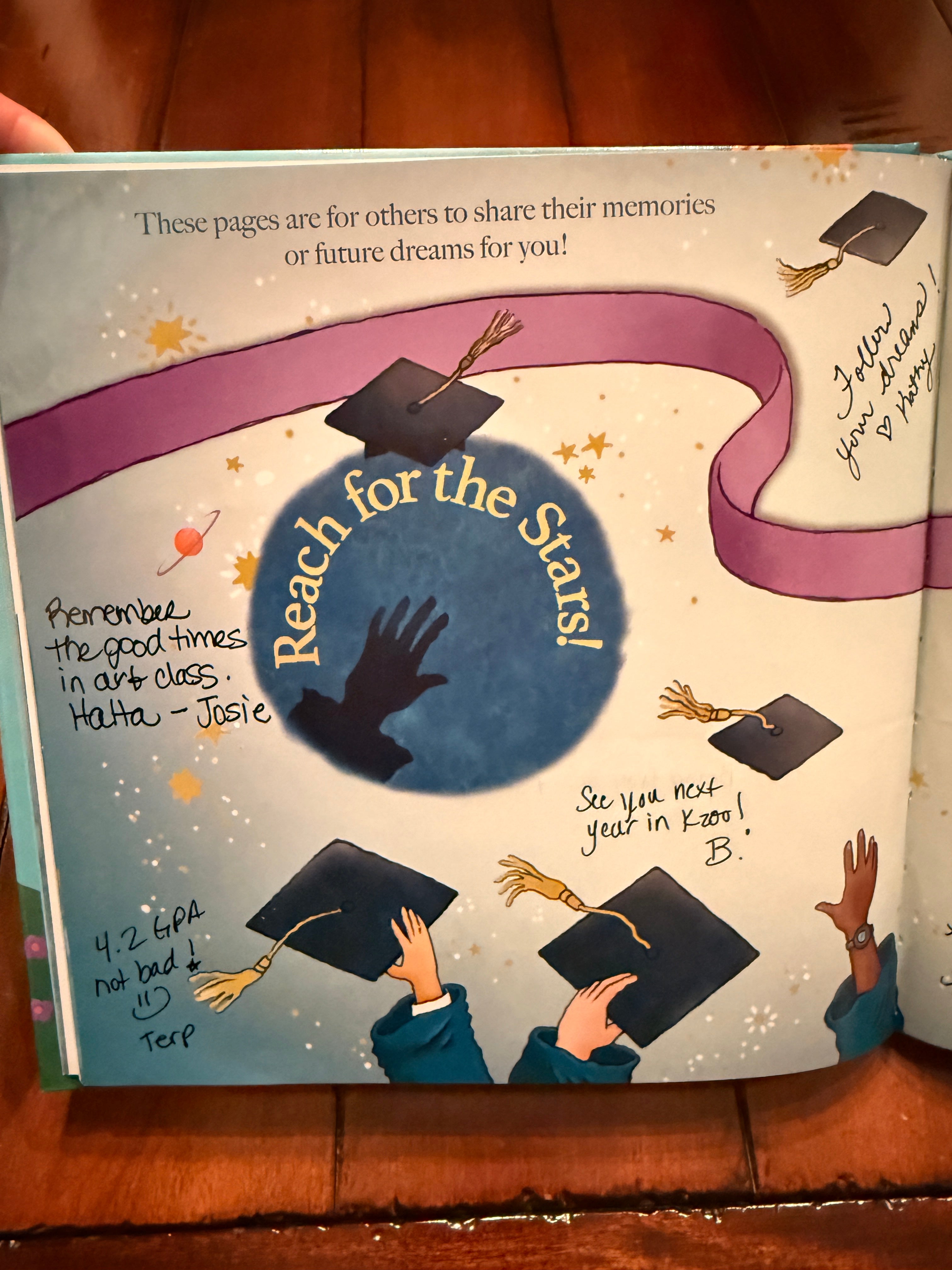 Signature pages for parents, grandparents, teachers, and friends to share personal messages and encouragement.
